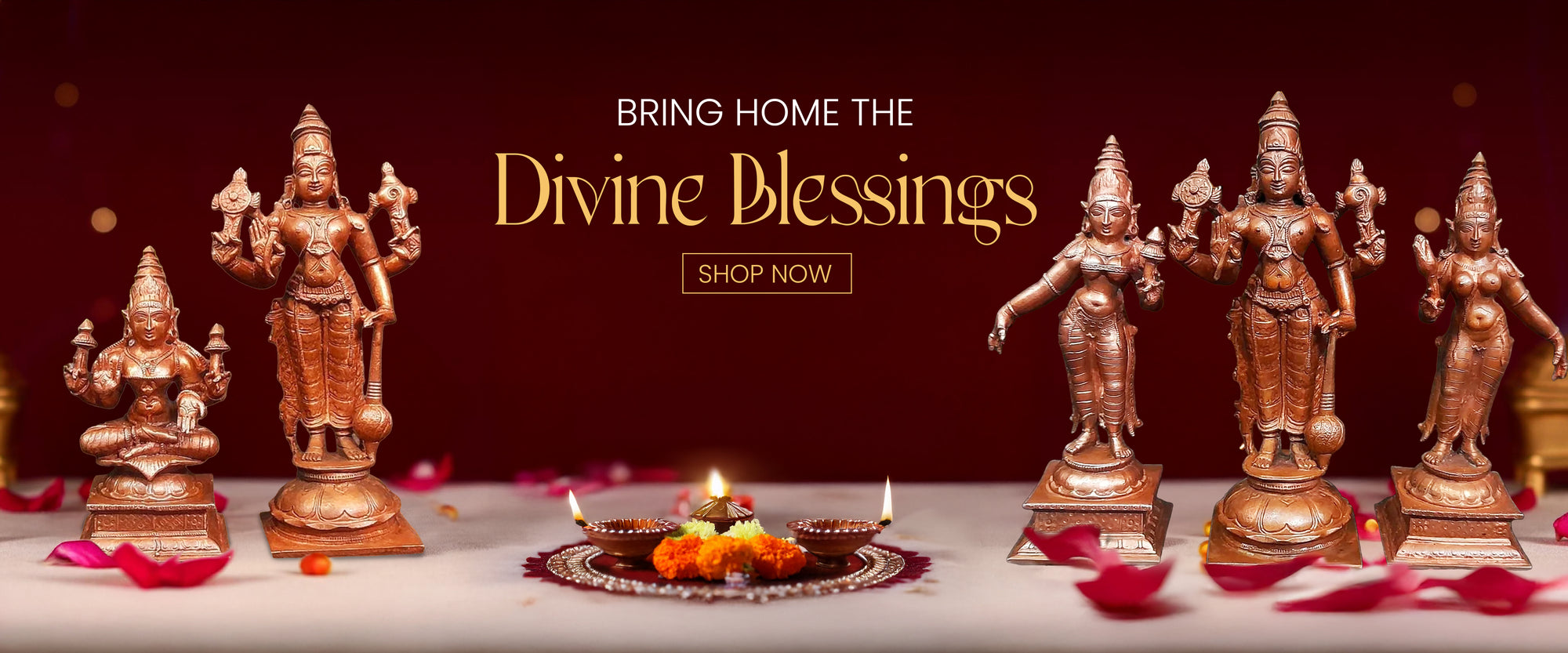 Each piece in our collection is a keeper of heritage not mass-produced, but soulfully sculpted. Designed to grace your pooja space or accent your living sanctum, it blends the sacred with the aesthetic, the vintage with the now.