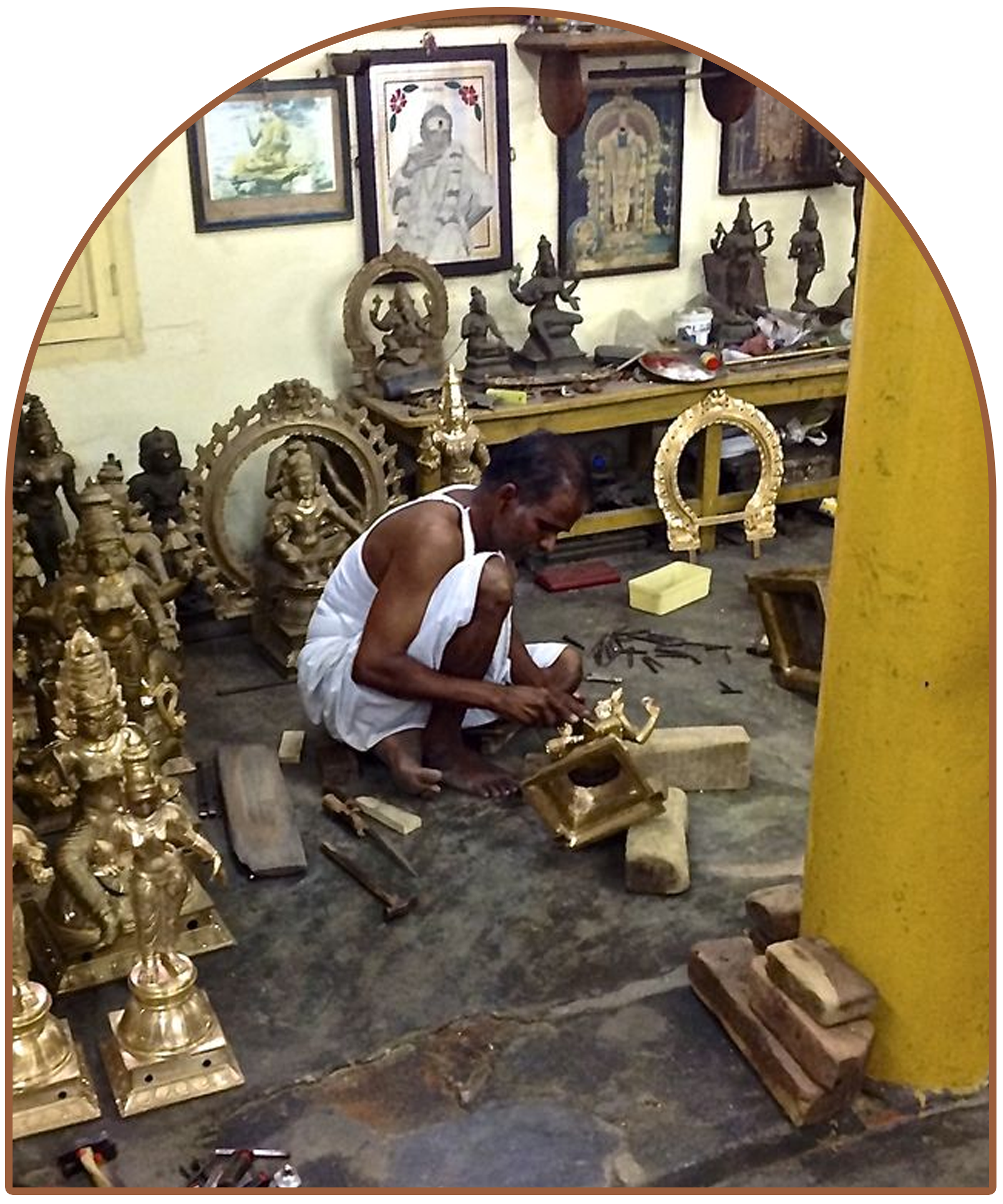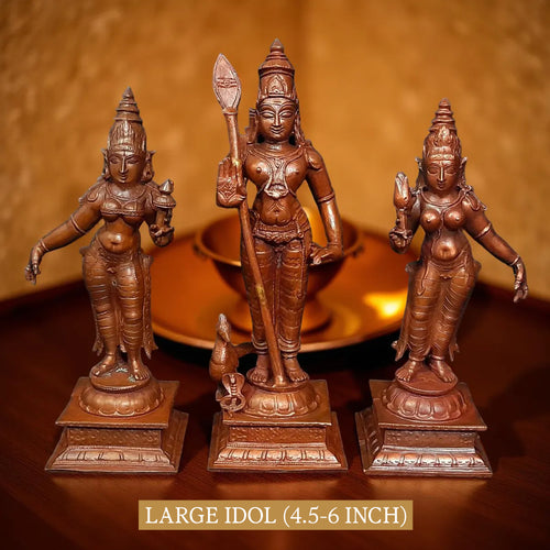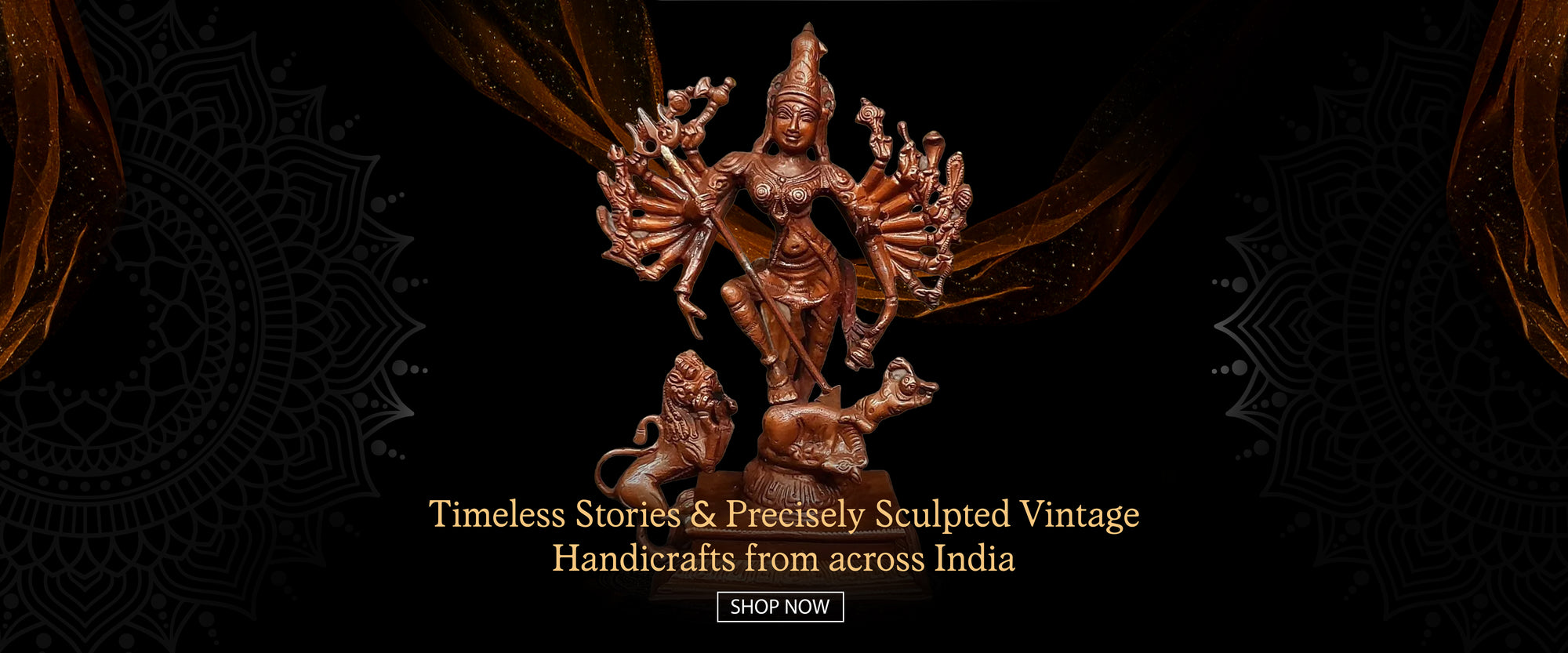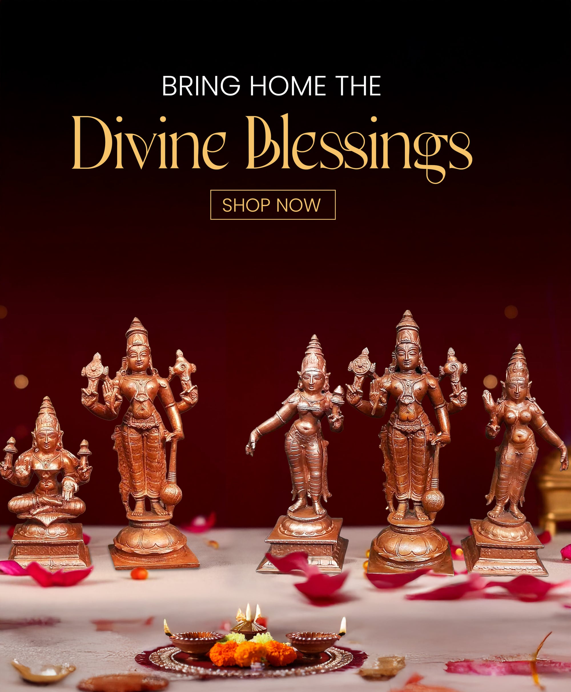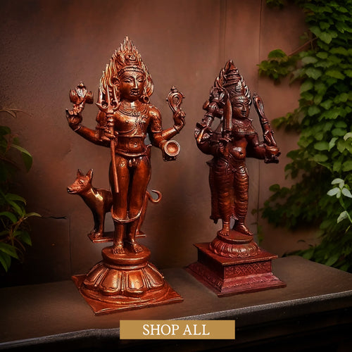 Each piece in our collection is a keeper of heritage not mass-produced, but soulfully sculpted. Designed to grace your pooja space or accent your living sanctum, it blends the sacred with the aesthetic, the vintage with the now.